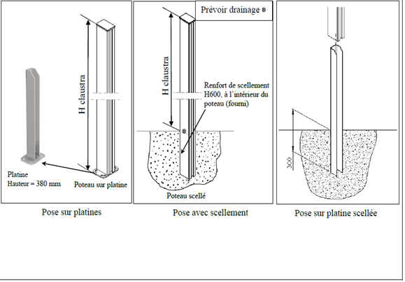 Ces planches sont des tiges en aluminium utilisées pour maintenir les poteaux en aluminium invisibles aux supports en béton. Pour installer le poteau par serrage, il vous faut :