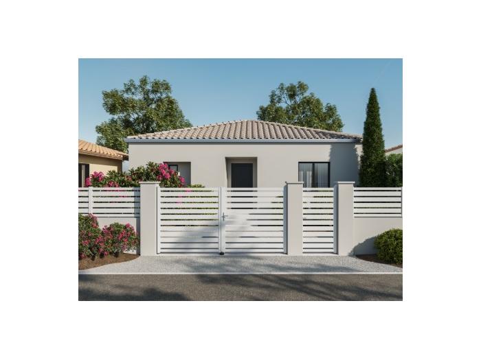 Ce portail est composé d'un remplissage avec des barreaux horizontaux ou verticaux en PVC de 120 mm, soutenues par des montants aluminium de 94 x 53 mm et des traverses de 94 x 49 mm. Il est possible de choisir le portail alu battant avec des vantaux inégaux, ou le portail alu coulissant en version 2 vantaux ou 2 vantaux simplifiés. Il est également possible d'opter pour des barreaux de 80 mm par 24 mm (en option).